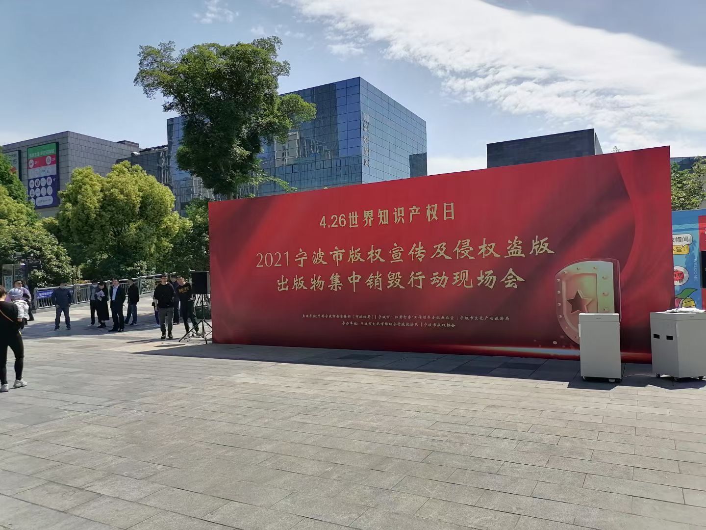 今年是第21个世界知识产权日。为进一步强化知识产权宣传,打击侵权盗版行为,提升保护知识产权意识。4月26日上午,2021宁波市版权宣传及侵权盗版出版物集中销毁行动现场会在市文化广场举行。活动由中共宁波市委宣传部(市版权局)等主办,宁波市版权协会联合承办。各区县(市)版权行政管理、文化市场综合行政执法人员等共计100余人参加。活动展示了我市文化市场综合执法成果,对各区县(市)的版权服务工作站进行了授牌。本次活动共销毁收缴的盗版图书报刊、盗版音像制品55300余件(册)。