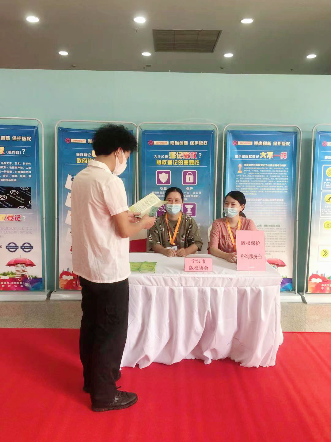 10月9日至11日,第七届浙江书展在宁波国际会展中心召开。市版权协会派专人设立展位,为参观民众提供版权登记、版权保护维权等咨询服务,宣传版权知识,展示版权的魅力。在3天的会展期间,参会者就版权登记、登记版权的作用、作品被抄袭了如何维权等一系列问题与协会同志进行交流,协会同志都认真做了解答。我们的现场宣传得到了参会人员的认同。在活动中,大家普遍反映,像这样接近实际宣传保护版权活动,很有意义和必要,希望以后书展再来。(秘书处)