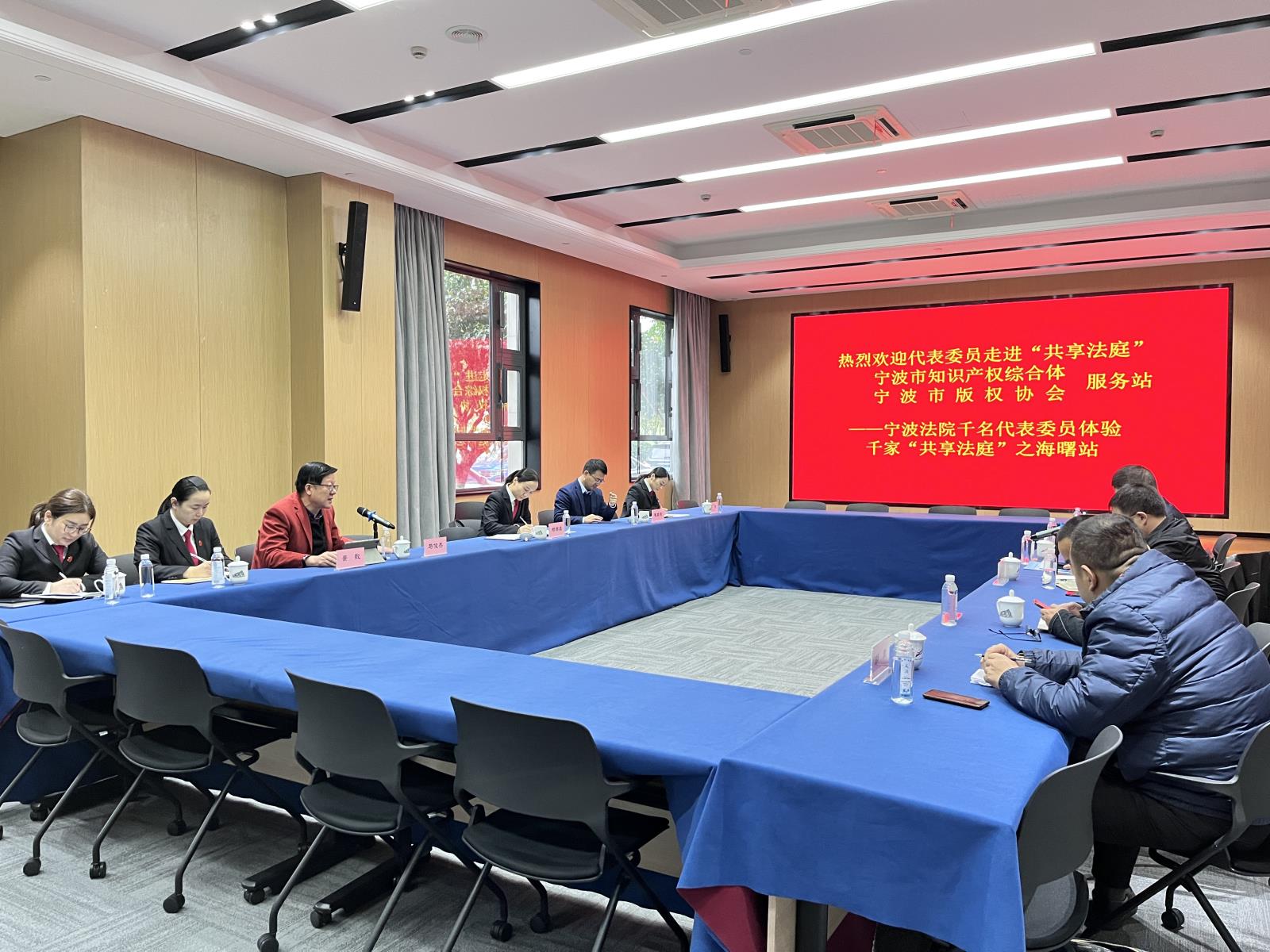 12月1日上午,海曙法院邀请市人大代表李道峰、张向飞,市政协委员黄立明、冯国铭和海曙区政协委员胡斌等一行人走进海曙区人民法院共享法庭(宁波市知识产权综合体、宁波市版权协会服务站)。中国(宁波)知识产权保护中心主任毛高蔚和宁波市版权协会秘书长景致陪同参观调研。