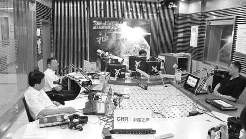 7月10日晚,中央人民广播电台中国之声《政务直通》访谈栏目进行直播。国家版权局有关部门负责人于慈珂(左二)、中国新闻出版研究院院长郝振省(左一)、中国社会科学院知识产权中心教授李明德(右一)应邀做客,共同就我国版权保护现状及版权产业如何助力文化产业发展等问题进行探讨,同时与微博网友交流互动。